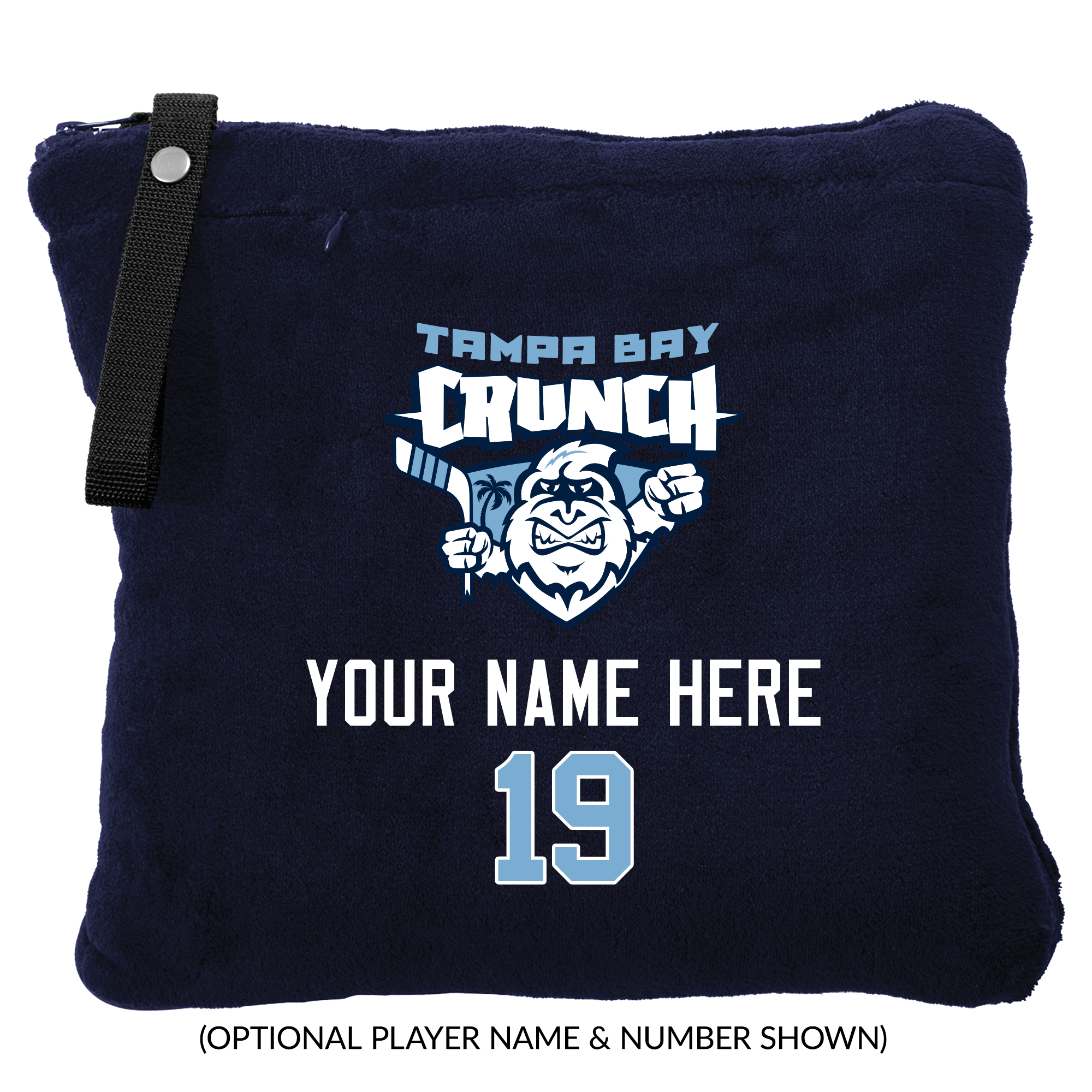 This soft travel blanket packs and zips easily into a pillow, then opens into a cozy blanket — with foot pockets! However you use it, the embroidered team logo stays visible.