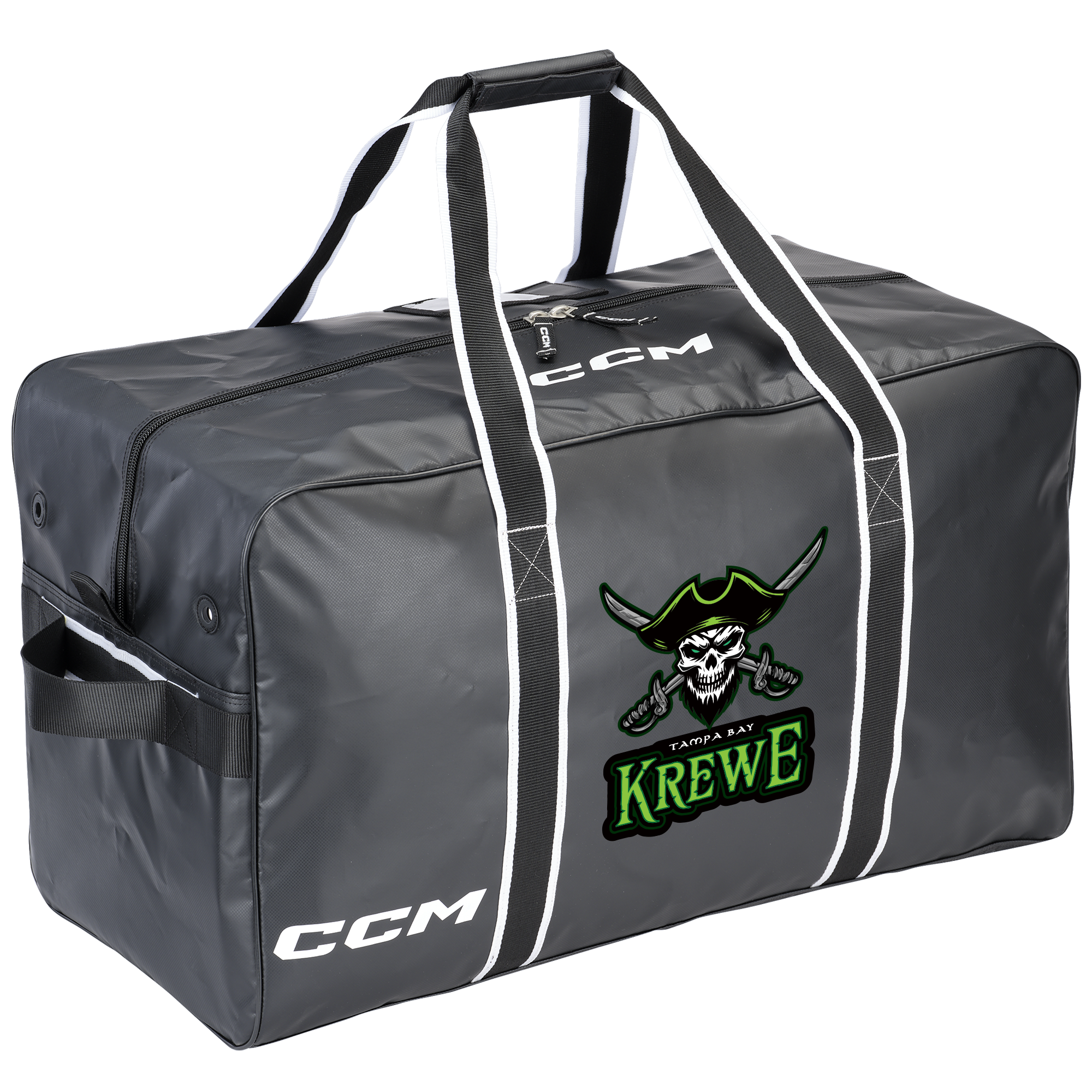 With reinforced handles on top and on the sides, the CCM Pro Team bag is the easiest, most comfortable and efficient way of hauling your hockey equipment while keeping it safe. (And, thanks to its heavy-duty water-resistant tarpaulin, dry as a bone!)